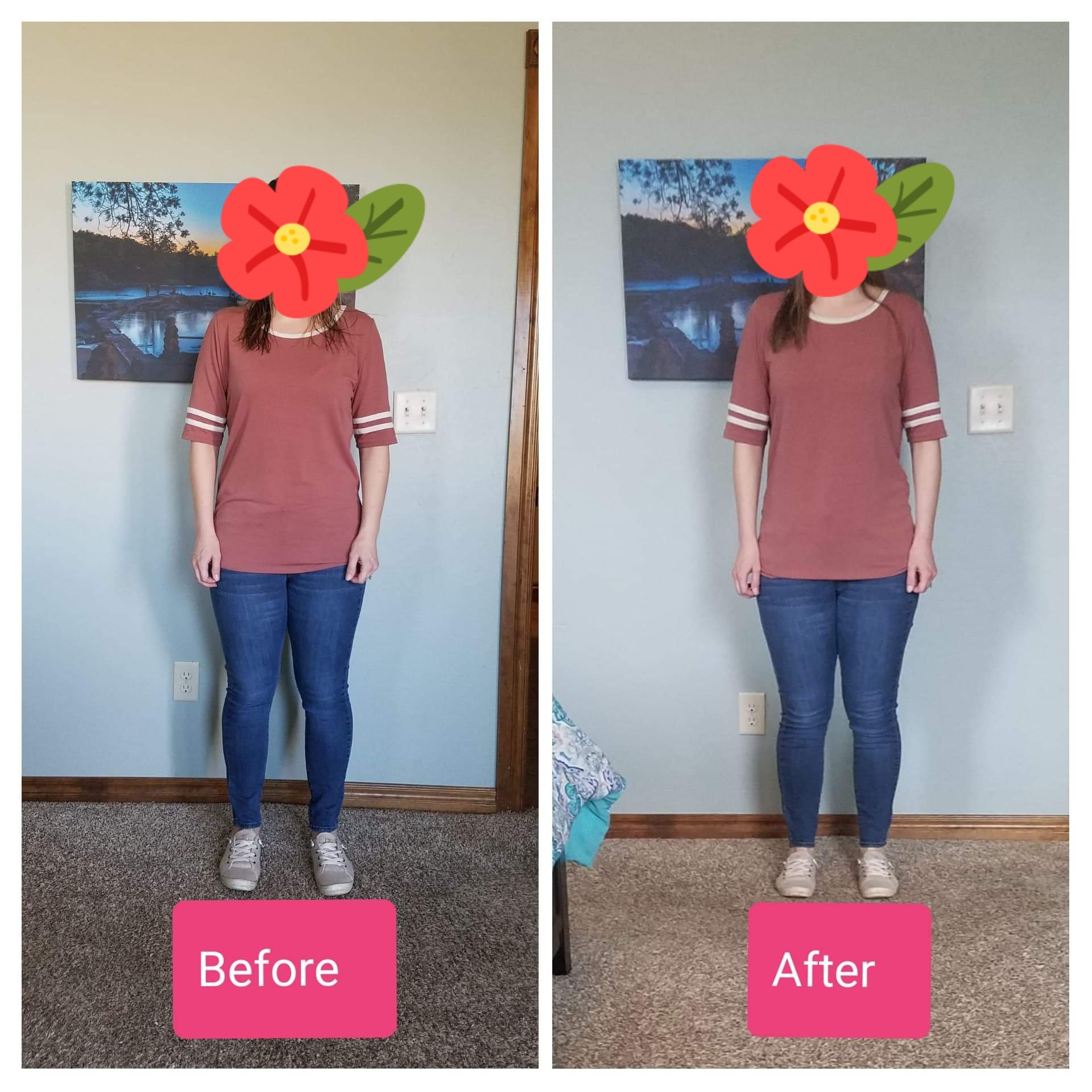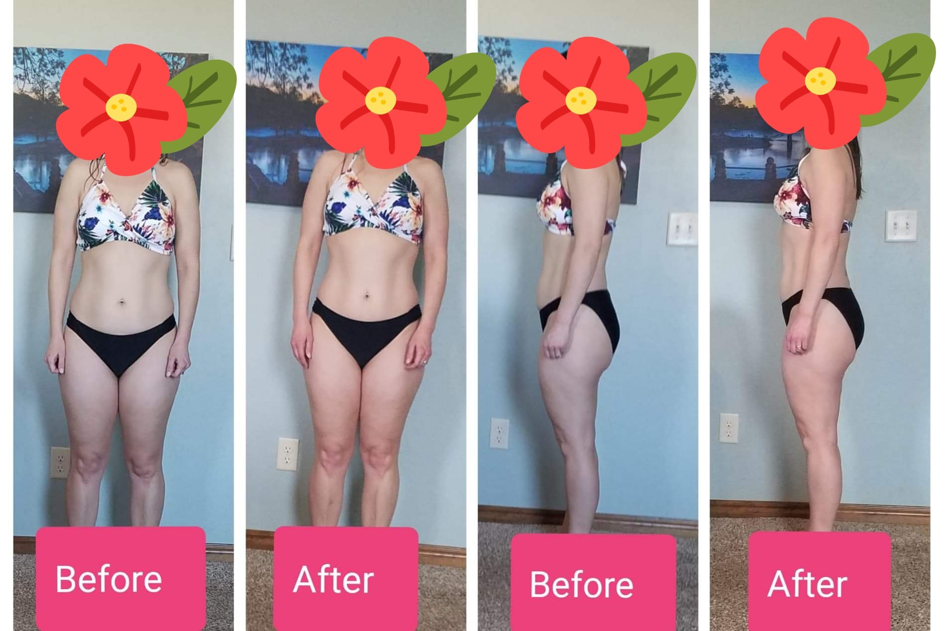 Jenna was in my 6 week group coaching and she was a truly an inspiration of dedication and determination. This was her second group and I can’t wait to see what else is in store for her in the future. She did all challenges and she rocked the exercise challenge. Look at her, just wow!!! She lost about couple of pounds but she lost several inches, you can see smaller waist and a bummy lift. I can see the definition of her abs as well.