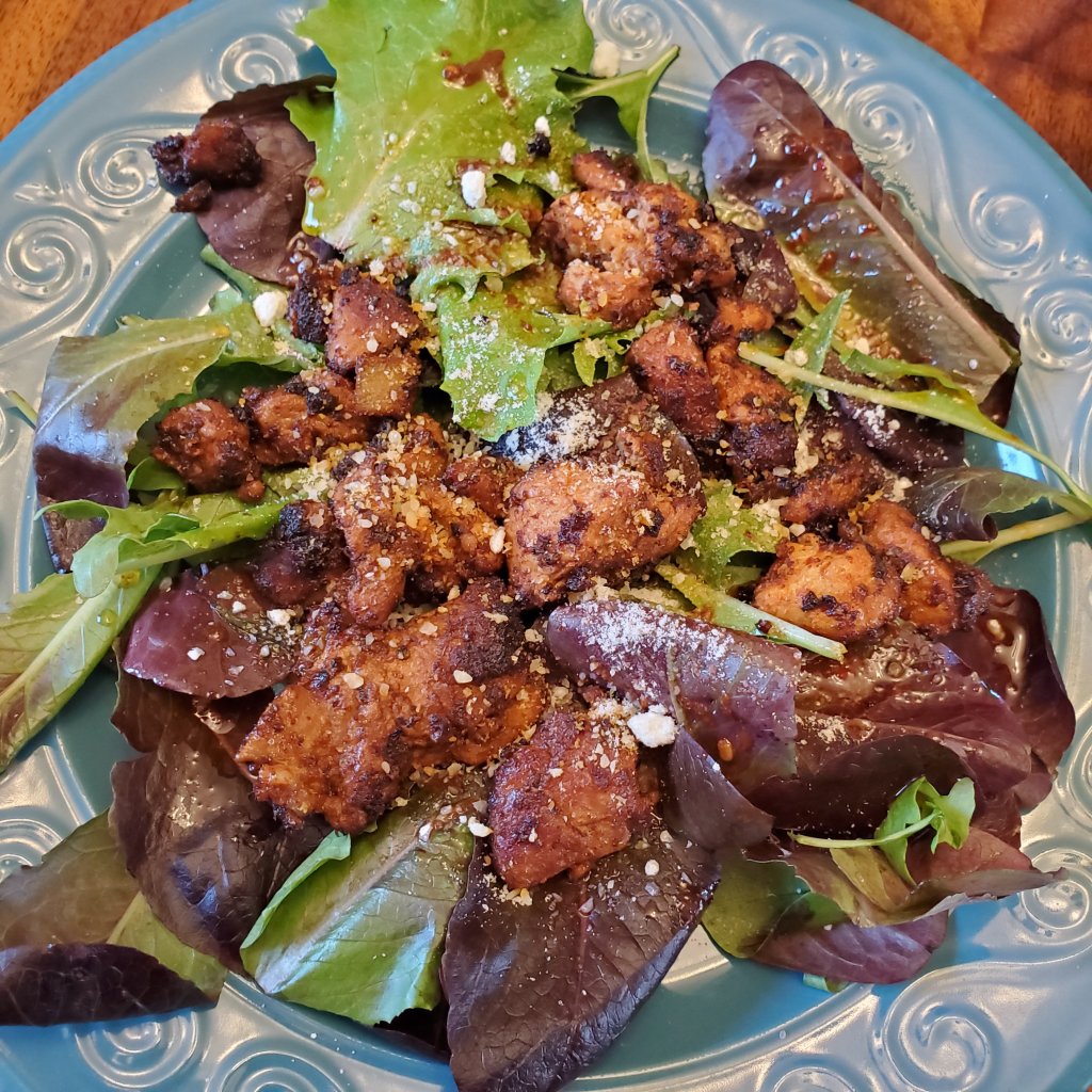 Or you can make a big salad with mixed greens, cucumbers, with Magaly’s spicy DS dressing, (https://from-caterpillar-to-butterfly.com/2020/04/18/magalys-spicy-ds-dressing/) and pour about 5 oz of Al pastor meat, and 1 tbsp of Parmesan cheese.